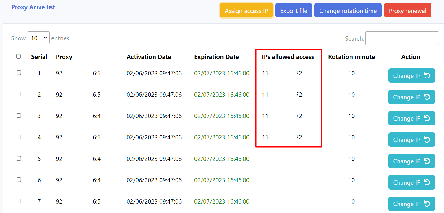 - If you do not choose (tick on) any proxy, commands will be executed for all proxies in your proxy list. For example, if you do not tick on any proxy before assigning access IP, the added IP will be assigned to all proxies.