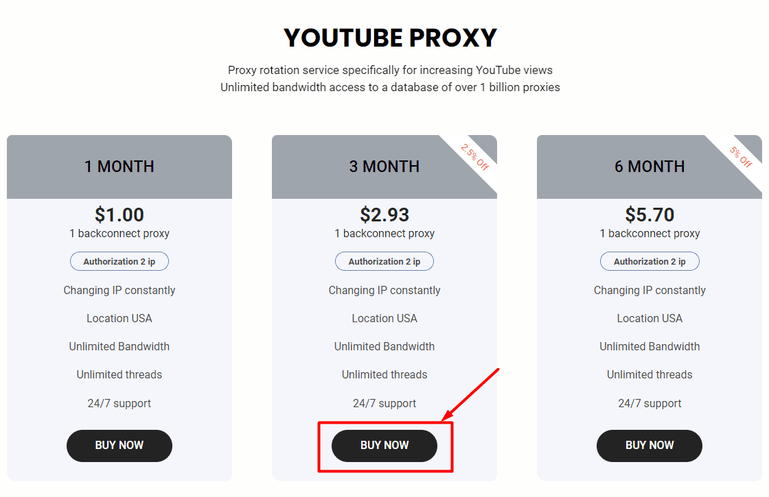 Then, you choose a proxy package that you want to buy => click BUY NOW