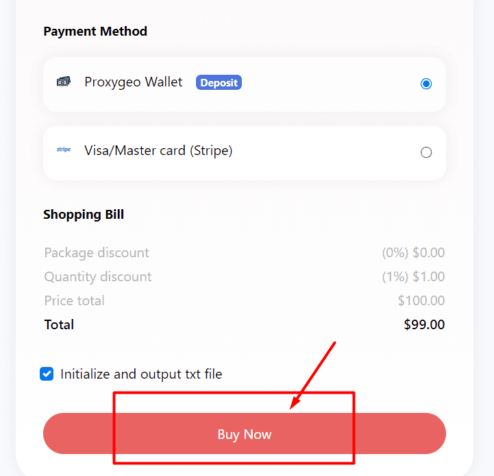Finally, after depositing your Proxygeo wallet, you click Buy Now to buy proxies.