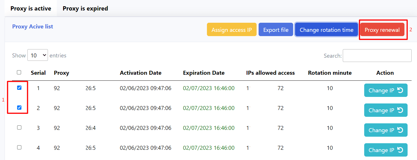 First, you tick on the proxies that you want to renew => click on Proxy renewal