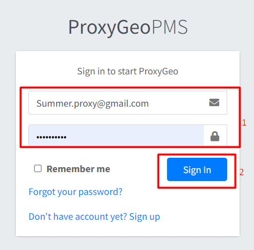 Finally, you sign in your created account at ProxyGeo.com
