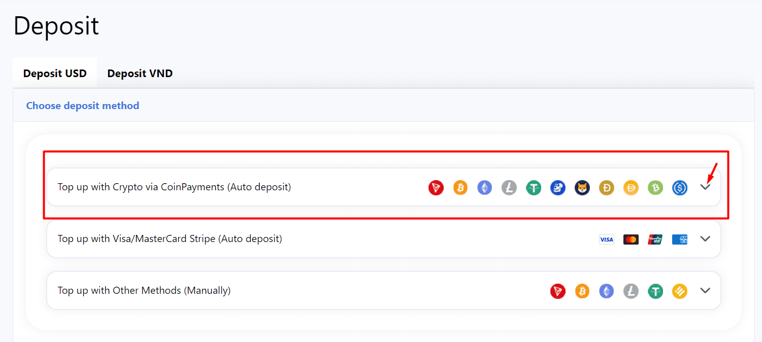 Case 1. If you want to top up your account automatically with crypto, you click on