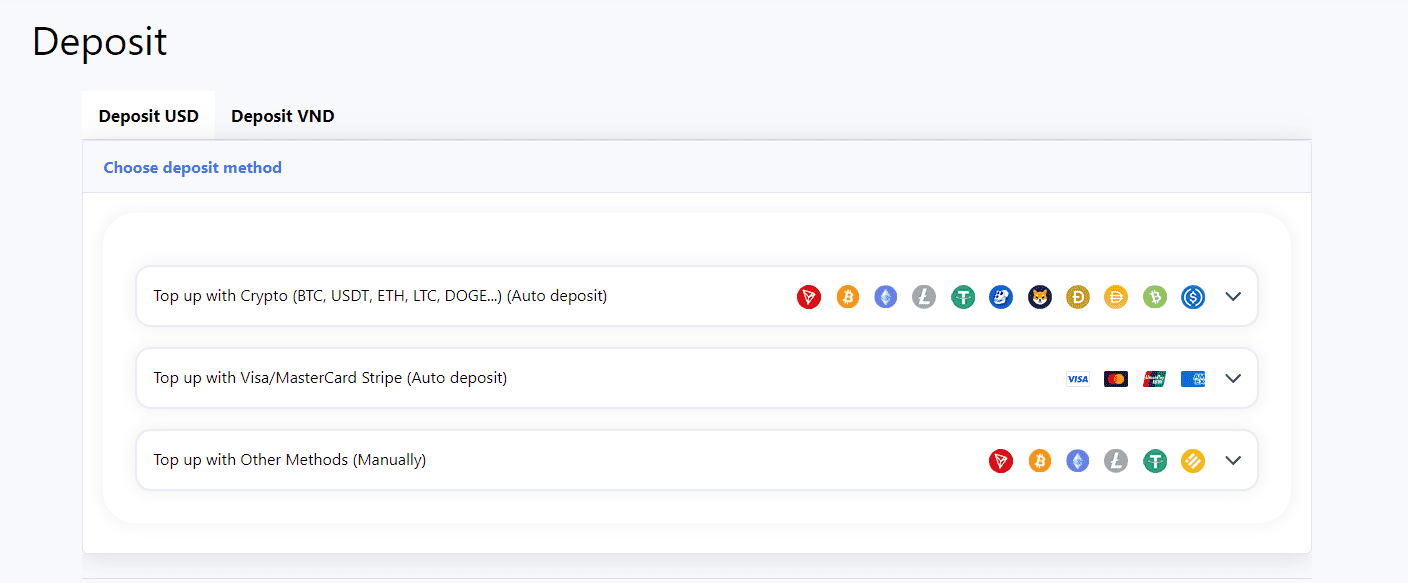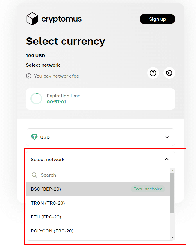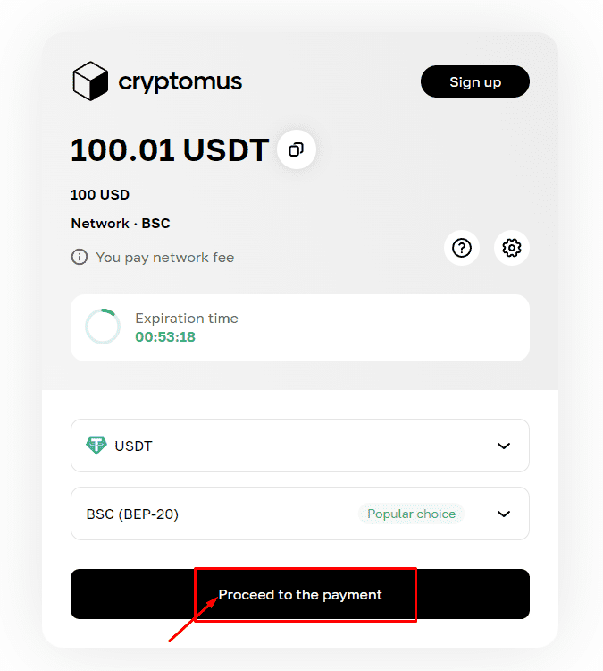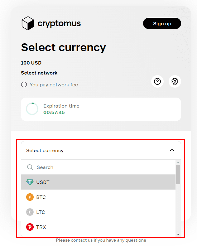 We will redirect you to Cryptomus page. Next, you select the currency you want to use to make payment
