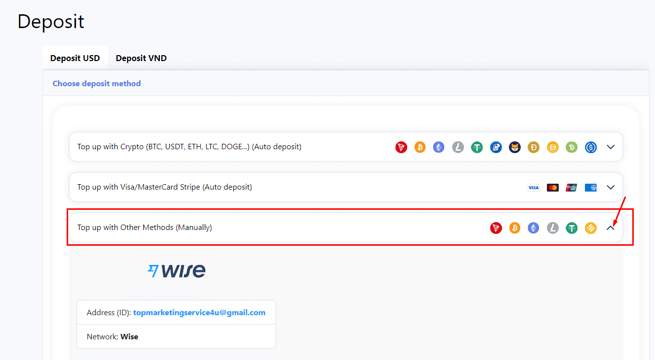 Next, please contact us to show the proof of payment (contact info), we will help you deposit your account manually.